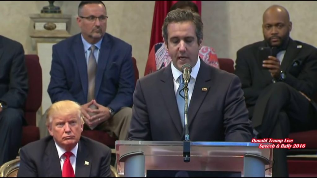 Cohen a admis că a folosit fonduri din campania pentru alegerile prezidențiale a lui Donald Trump pentru a o plăti pe starleta porno Stormy Daniels, care a susținut că a avut o aventură cu actualul președinte de la Casa Albă. Marți, Cohen a dat de înțeles că îl implică și pe președinte în acest caz, în momentul în care a declarat curții că a fost îndrumat de „un candidat pentru biroul federal” pentru a facilita plata către starletă, cât și pentru a o plăti pe Karen McDougal, fost model Playboy.