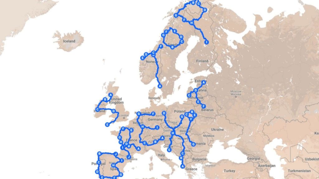 Călătoria se va sfârși în octombrie în Spania, după ce a trecut și prin România: „Campingul gratuit între haitele de câini maidanezi a fost o experiență. Dar este o țară frumoasă, Transilvania, în special Sibiu și Transfăgărășan fiind experiențe minunate”.