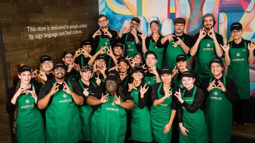 Starbucks a deschis prima cafenea gândită special pentru persoanele surde sau cu deficiențe de auz, unde toți angajații sunt fluenți în limbajul semnelor.